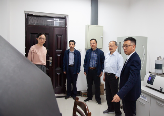 5月26日上午,安徽省科技厅组织专家组到我校现场考察“氢电高效转化与固态存储安徽省重点实验室”。专家组由省科技厅创新基地建设处罗宇涵副处长带队,马鞍山市科技局成祖松副局长,校党委常委、副校长水恒福,科研处处长负责人,实验室负责人及相关人员陪同现场考察。