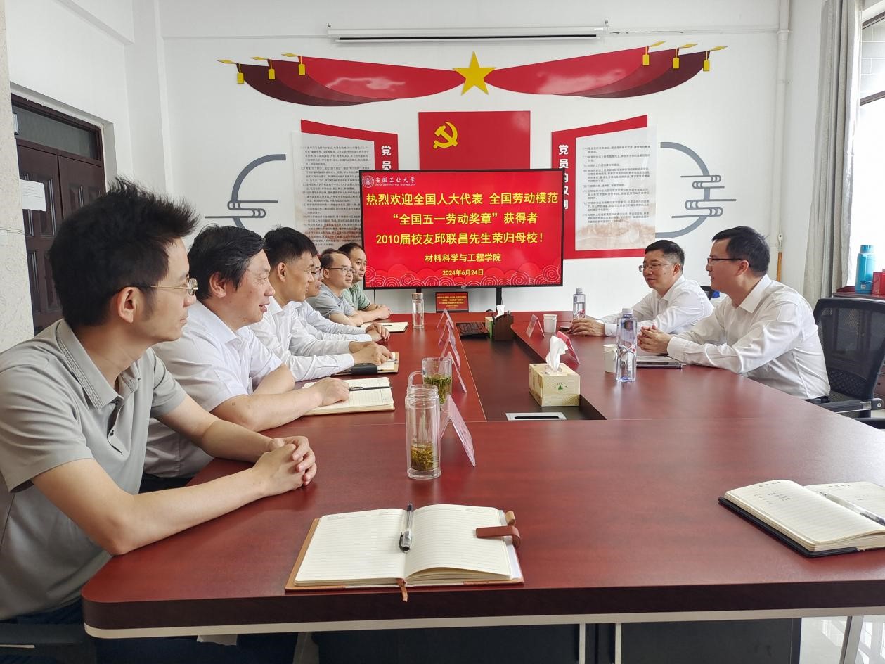 2010届校友邱联昌应邀到学院座谈交流。校友处处长孙晓斌,学院党委书记杨建,院长柳东明,党委副书记、纪委书记、副院长汪盛颜,副院长夏爱林、李永涛,金属材料工程系系主任王永强及毕业班辅导员参加座谈交流会。