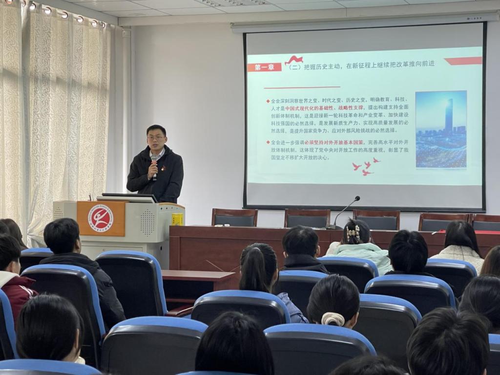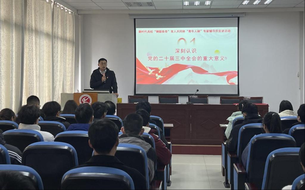 杨建首先介绍了新时代高校“钢筋铁骨”育人共同体“青年人梯”专家辅导员宣讲活动的背景意义。他围绕党的二十届三中全会的重大意义进行了深刻阐述,介绍了党的二十届三中全会的有关情况及取得的重要成果,分析了把握历史主动、在新征程上继续把改革推向前进的必要性和紧迫性,以及深刻理解新一轮改革战略重点任务的重要性。