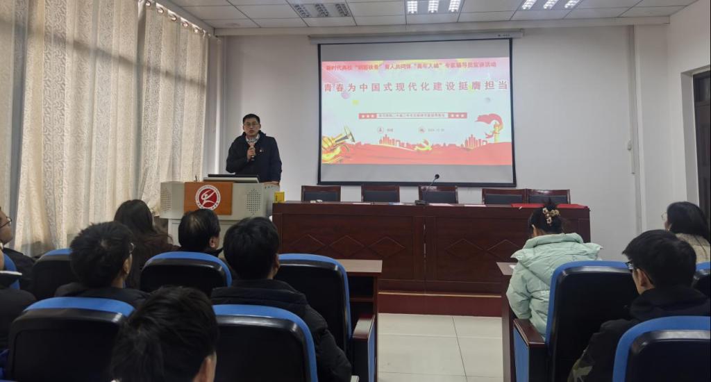 于2024年12月30日在材料楼405举办新时代高校“钢筋铁骨”育人共同体“青年人梯”专家辅导员宣讲活动——“青春为中国式现代化建设挺膺担当”专题讲座。此次讲座由高校“青年人梯”专家辅导员宣讲团成员、H视频