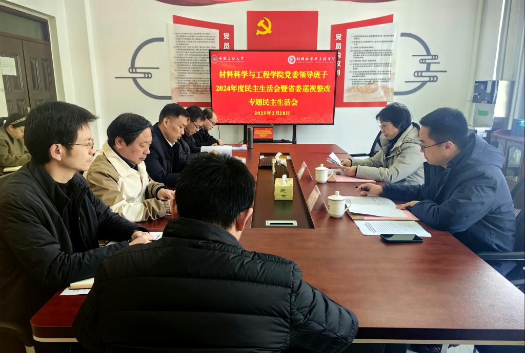党委领导班子在材料楼405会议室召开2024年度民主生活会暨省委巡视整改专题民主生活会。学校第三督导组长、校党委常委、副校长顾明言到会指导,组员陈云亮参加。学院党委领导班子成员、组织员、支部书记代表参加了会议。会议由学院党委书记杨建主持。