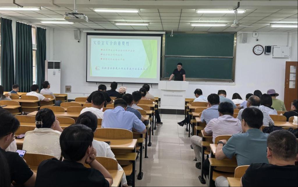 在教一北105开展实验室安全管理培训会,全院教职工参加,培训由学院实验室安全管理员李殿凯主讲。