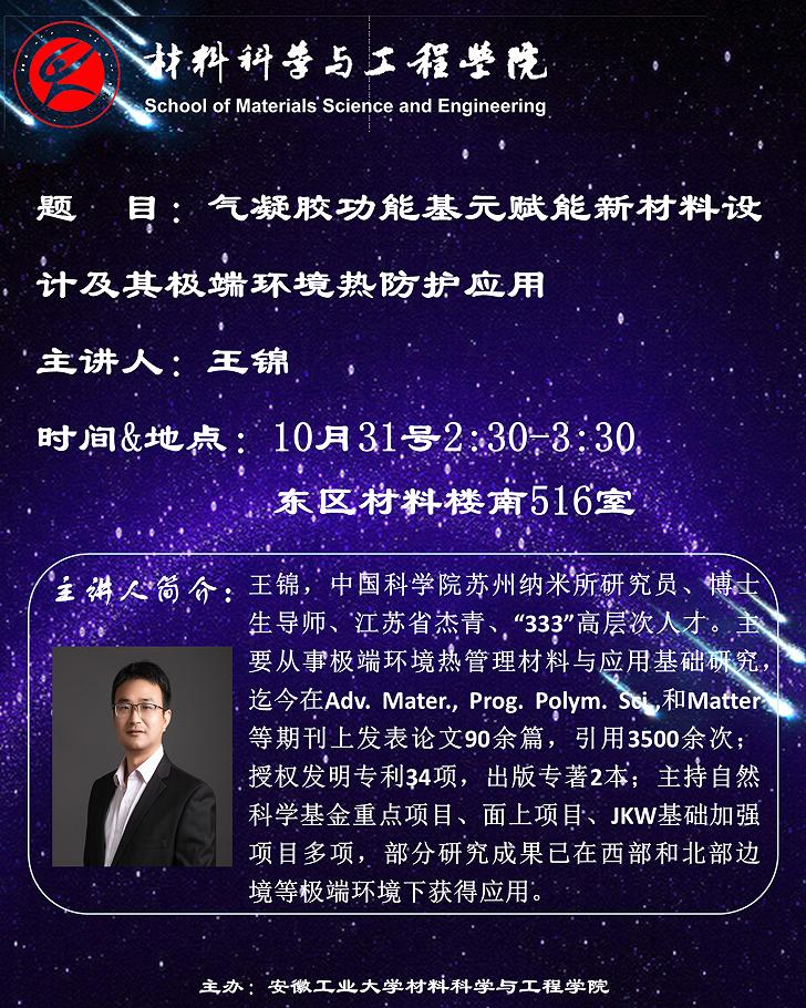 学术报告:气凝胶功能基元赋能性材料设计及其极端环境热防护应用