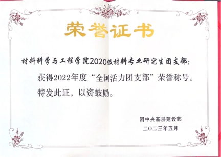 2022年度“全国活力团支部”(2020级材料专业研究生团支部)