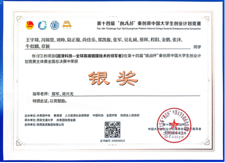 第十四届挑战杯秦创原创业计划竞赛国赛银奖(王宇琦等)
