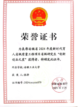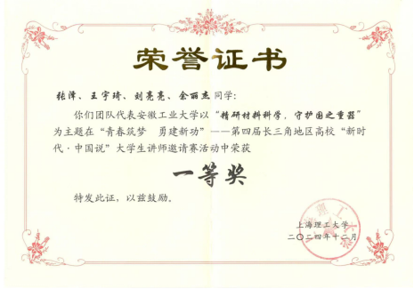 第十届“挑战杯·华安证券”安徽省大学生课外学术科技作品竞赛一等奖 (程阳等)