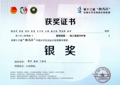 第十三届“挑战杯”中国大学生创业计划竞赛银奖(张浩洋等)