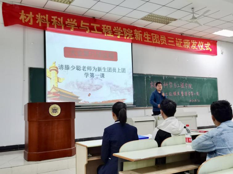 滕少聪介绍了共青团不平凡的发展史,讲述了在革命战争中为国牺牲,不畏强敌的先烈们,英雄们的精神将激励着共青团员努力学习,迎难而上,练就过硬本领报效祖国。他还结合新冠疫情期间,广大青年团员的无私奉献,强调了什么是青年团员的使命和担当。勉励共青团员不忘初心,砥砺前行,为祖国的伟大复兴贡献青春力量。