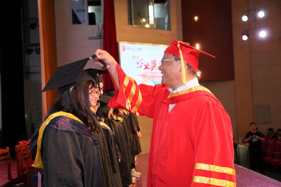 典礼上,刘新跃为全体毕业生拨苏正冠、颁发毕业证和学位证。院长何宜柱宣读2019届研究生、本科生毕业生名单,院党委书记季爱华宣读2019届校友联络员名单,副院长柳东明宣读“校优秀毕业生”名单,副院长斯松华宣读“安徽省品学兼优毕业生”。参加典礼的领导老师为毕业生代表颁奖了荣誉证书和聘书。