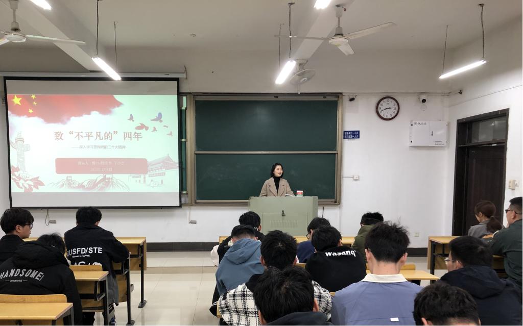 各学生班级围绕“爱国、团结、奋斗、科学、互助”关键词,通过观看视频、知识问答、感悟分享等形式,宣讲党的二十大精神。会上,各班级汇报了宿舍卫生检查情况,结合上学期学生学习过程以及期末成绩分析,对班级学生学习状况等展开分析研讨。参会领导老师们结合自身对党的二十大精神的所学所感、所思所悟,带领同学们深入学习和领会了党的二十大的重大意义,对报告中提出的新思想、新观点、新论断进行了深入解读。同学们结合时事热点、宿舍安全、思想动态、学习困惑等方面与老师们进行深入交流,老师们耐心倾听、积极回应,切实解决了同学们的问题与困惑。会后,同学们均表示受益匪浅。