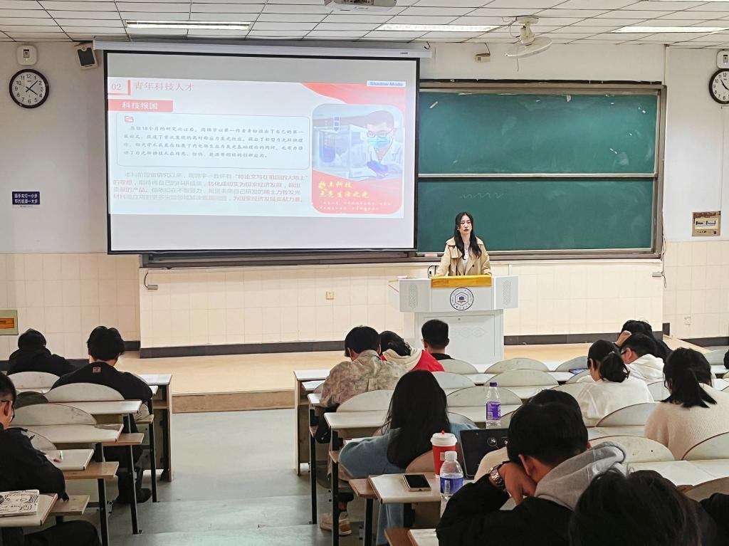在宣讲过程中,孙艳勉励同学们做到以“学”为先强信仰,以“实”为基抓落实,以“干”为要勇担当。要坚持用党的创新理论凝心铸魂,坚定不移听党话、跟党走,主动把爱国情、强国志、报国行自觉融入推进中国式现代化发展的历史洪流中;要增长本领才干,秉持“真材实料”院训,勇于求索创新,积极投身于科学技术创新发展事业,用实际行动践行科技报国的使命担当;要锤炼品德修为,矢志艰苦奋斗,保持顽强拼搏的劲头,以实干实效彰显担当作为。