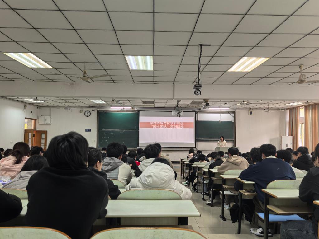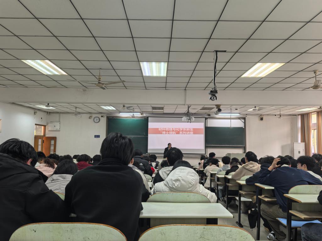 在佳山校区教三南401,面向材料科学与工程、氢能科学与工程、新能源材料与器件三个专业,开展“博士领航”系列论坛活动。材物系系主任马扬洲,班主任老师刘娟、汪冬红带队开启论坛第一讲,大一辅导员、相关专业学生参加会议。