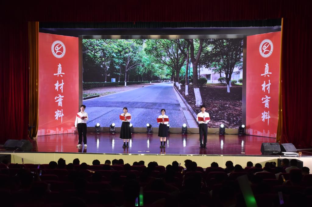 的奇妙日常》以实验室日常为原型,通过幽默诙谐的语言艺术,生动诠释了材料学子在科研攻关中的酸甜苦辣;集体诗朗诵《毕业了,我想...》将个人理想与科技强国战略深度融合,引发强烈共鸣;体育舞蹈《Latin Dance》通过青春灵动的舞姿,展现青年学子昂扬向上的精神风貌;小品《想不出剧本》以排练毕业晚会剧目为蓝本,通过戏剧化手法传递同窗情谊与师长期许;歌舞串烧以流畅的肢体语言演绎出别样风情,唤起了大家对大学时光的点滴回忆,熟悉的旋律在会场中回荡,不少观众轻声跟唱,沉浸在青春的回忆里;……当毕业班辅导员与毕业生代表合唱《凤凰花开的路口》时,全场师生挥舞手中的荧光棒激情互动,将现场氛围推向高潮。晚会通过温馨回忆、深情寄语与多彩节目,为毕业生们留下了难忘的夏日记忆。