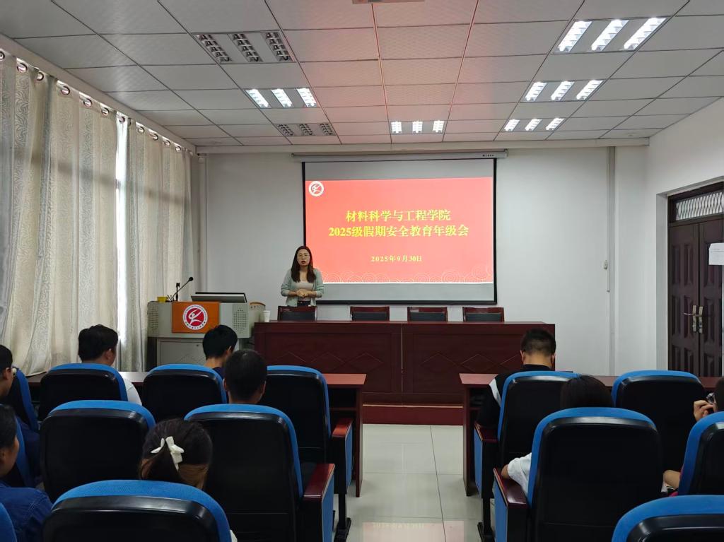 于材料南楼516会议室召开2025级新生假期安全暨防诈反诈专题教育年级会。会议由新生辅导员主讲,2025级新生到场参会。